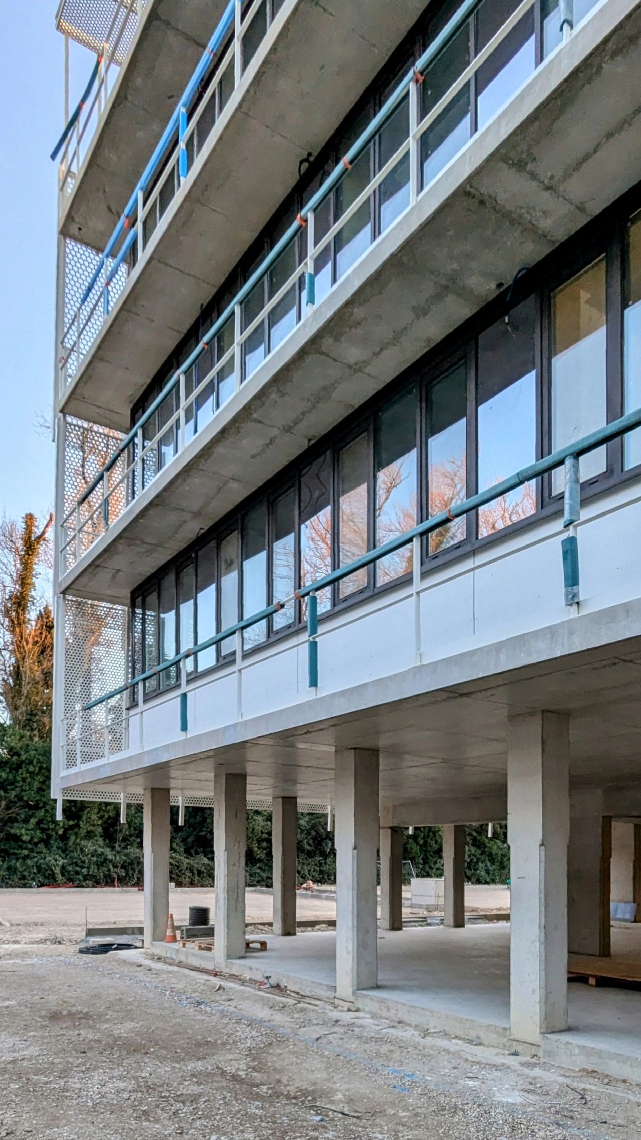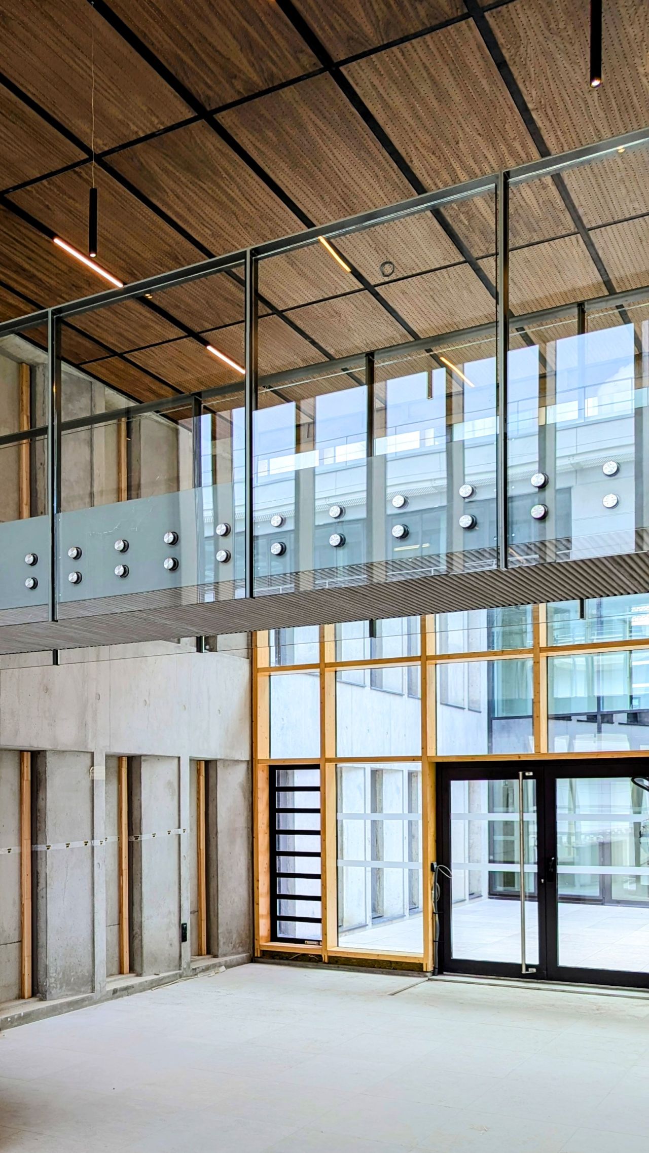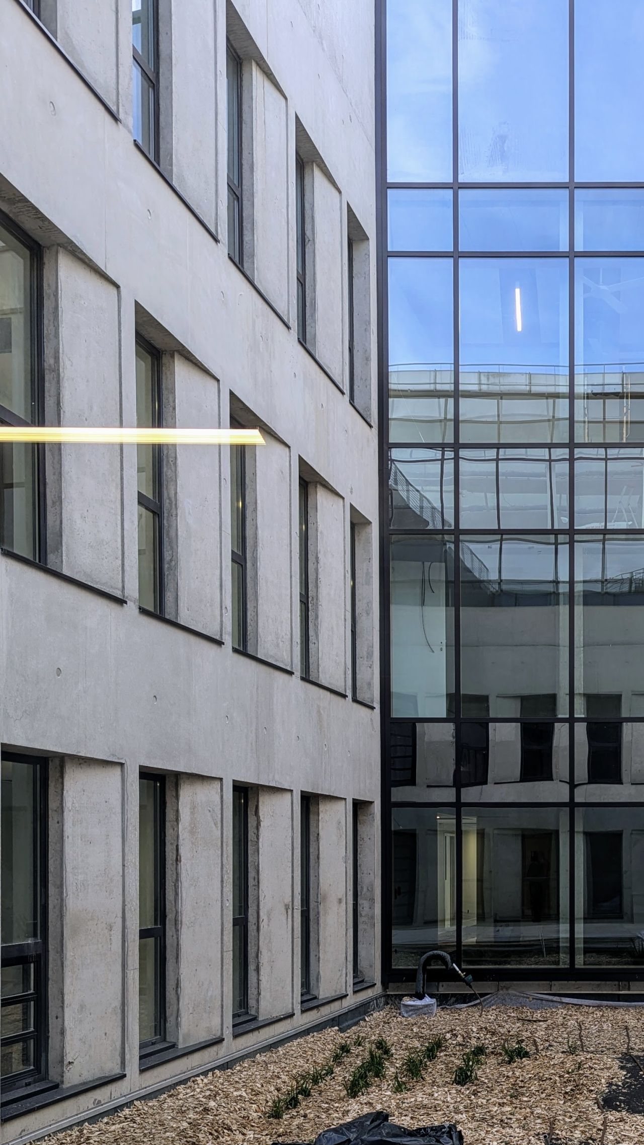 Notre intervention a consisté à concevoir, fabriquer et poser l’ensemble des façades vitrées, menuiseries bois-aluminium mixtes et occultations électriques, dans le respect des exigences architecturales, environnementales et esthétiques du projet.
